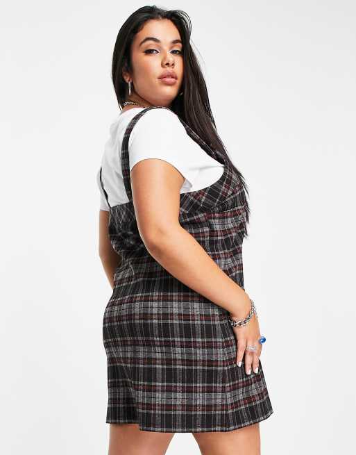 Asos Design Curve 2 In 1 Mini Pinafore Dress In Check Asos