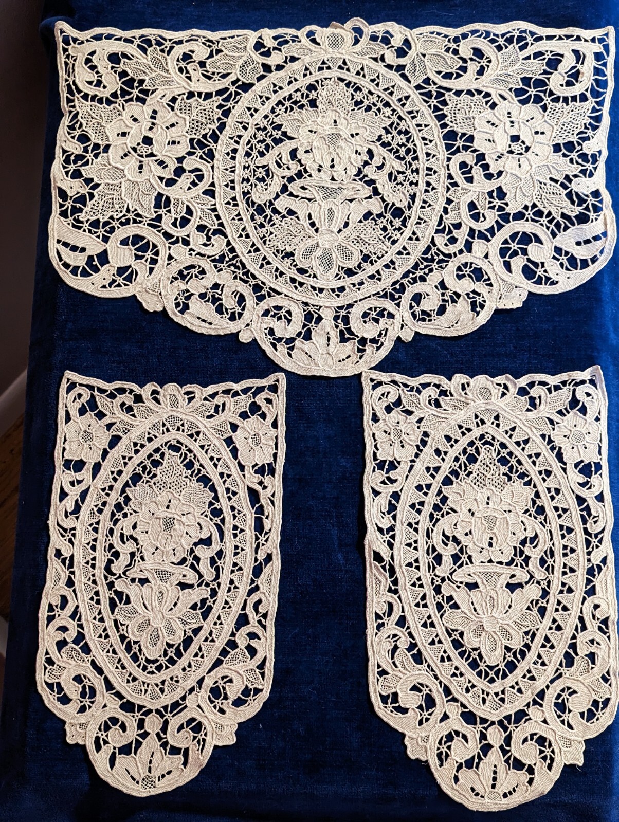 Antique Vntage Point De Venice Lace Antimacassar 3 Piece Chair Set Ebay